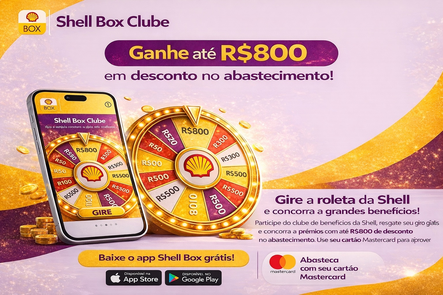 A cada giro, a roleta pode revelar vantagens especiais para usar no Shell Box, incluindo descontos, benefícios exclusivos e a chance de ganhar até R$800 no abastecimento.